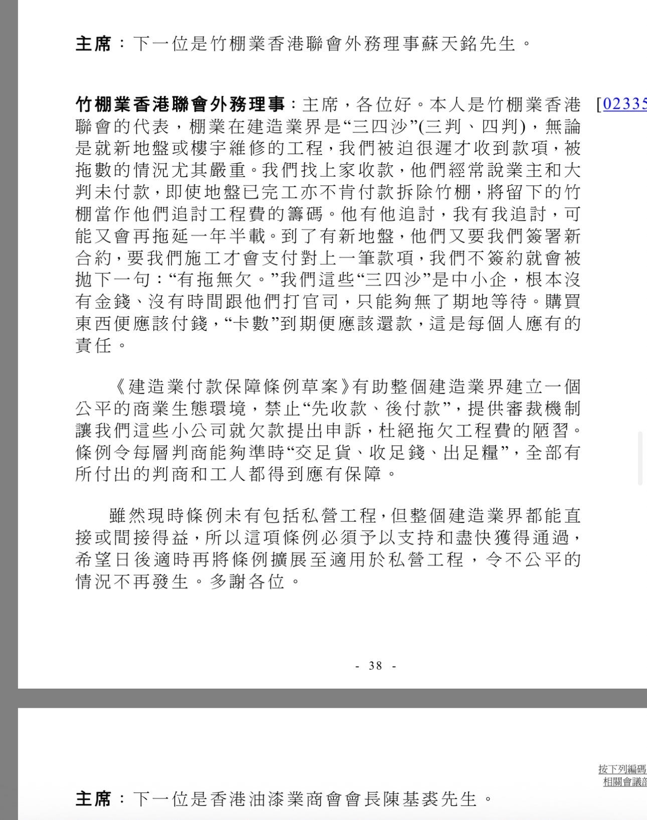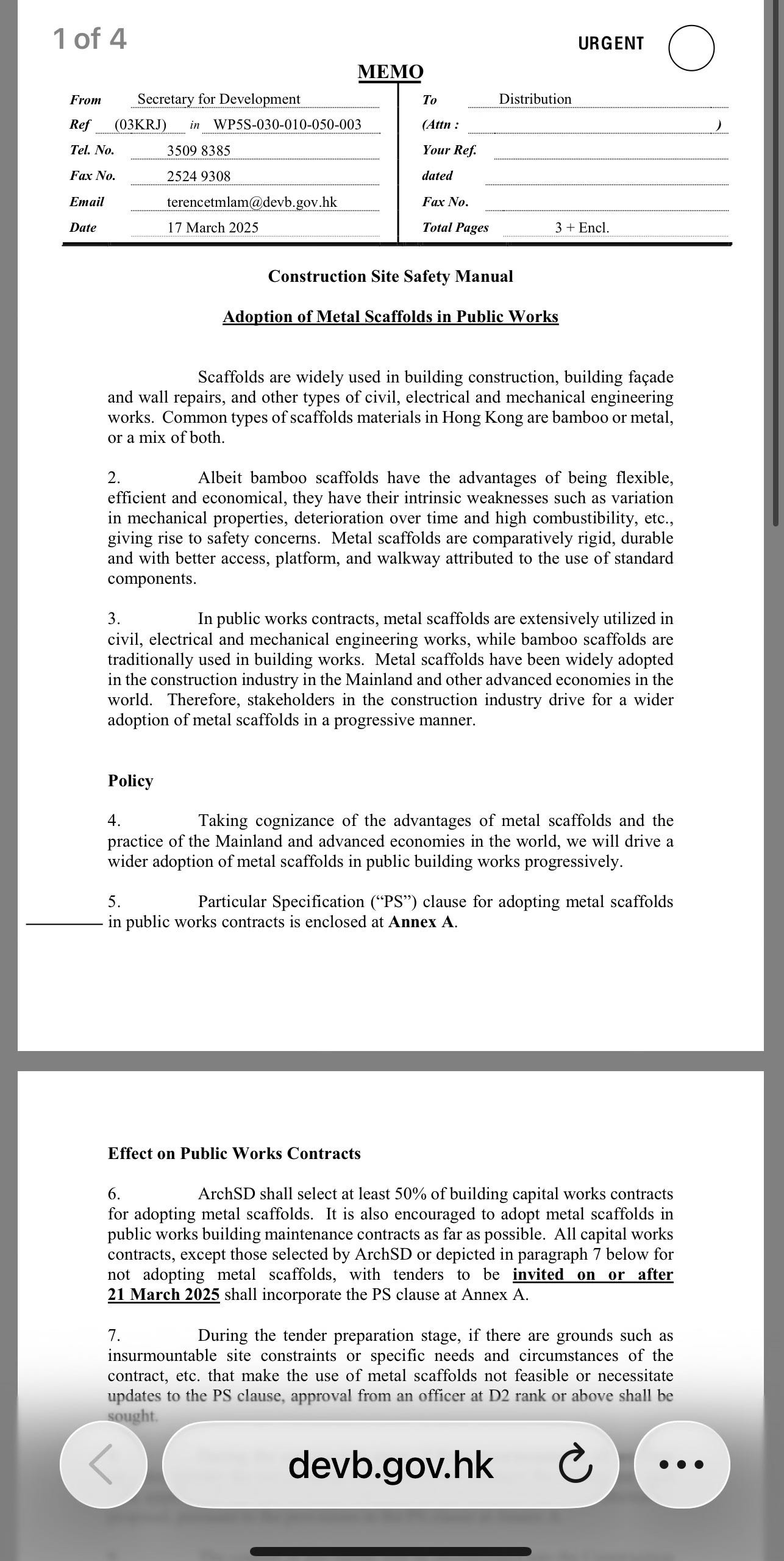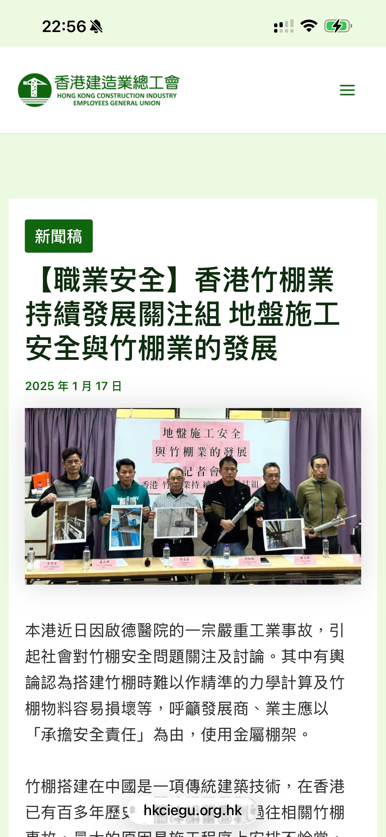 2025年1月,因为建筑事故,香港有舆论呼吁用金属棚架替代竹棚,竹棚业几个协会开新闻发布会请求社会关注和理解。而根据可查的报道,也看不到香港政府有这些行业协会磋商的行动。反而2025年3月,发展局直接发了memo表示未来在公务工程中用金属棚架而非竹架。这都说明这些竹棚行业的话语权之低,也说明在香港权力和利益结构中,这个行业绝非持份者。